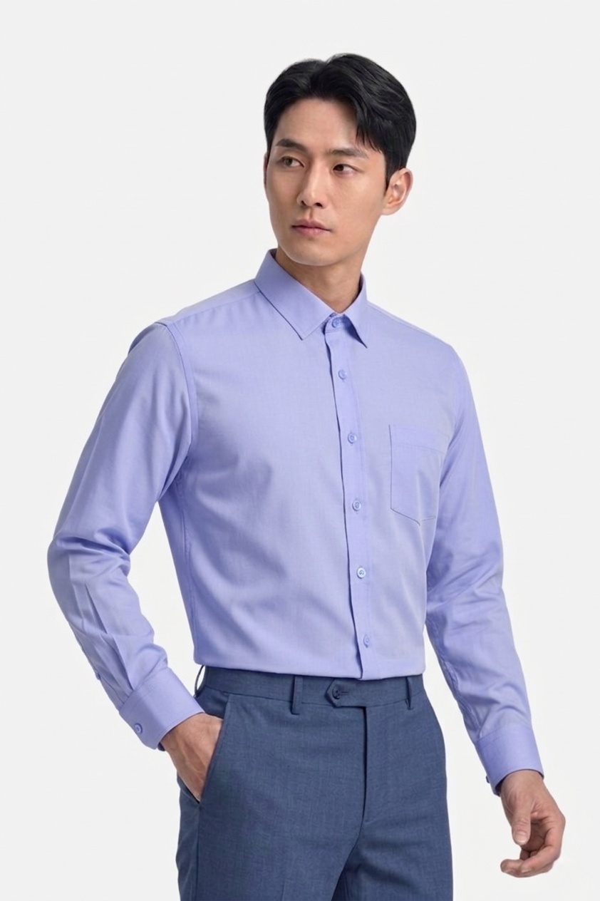Business casual plain men's long-sleeved shirt