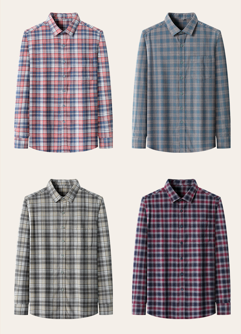 Casual cotton plaid long-sleeved shirt