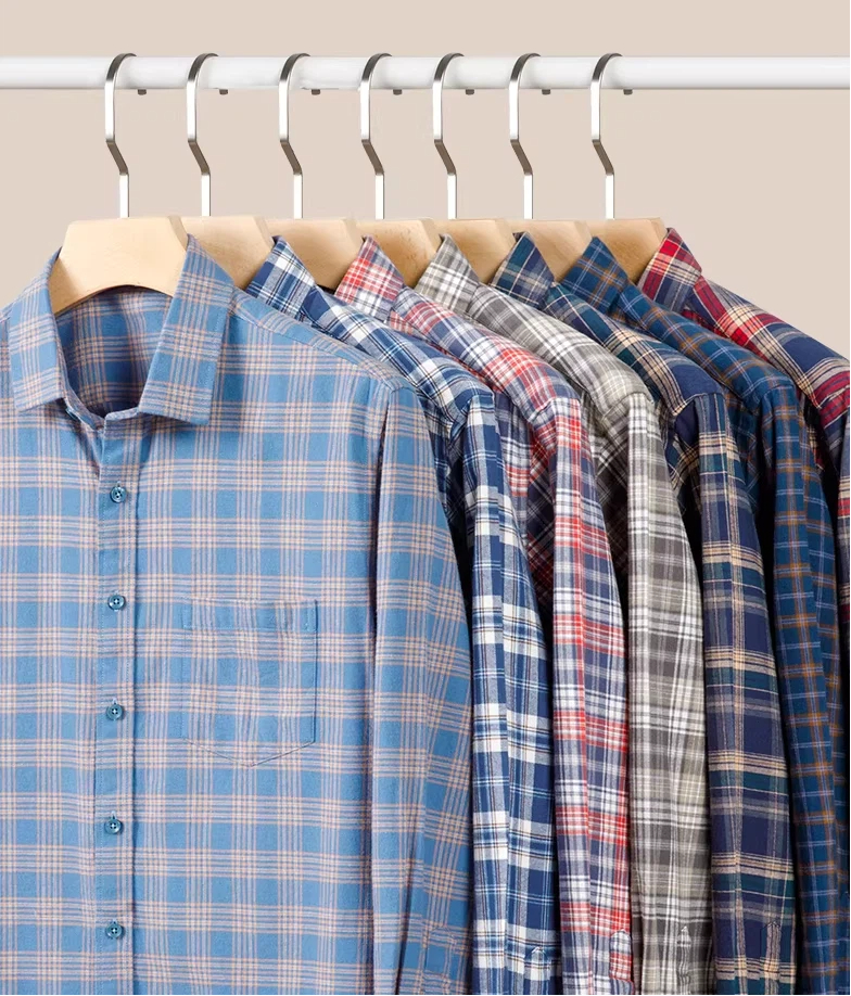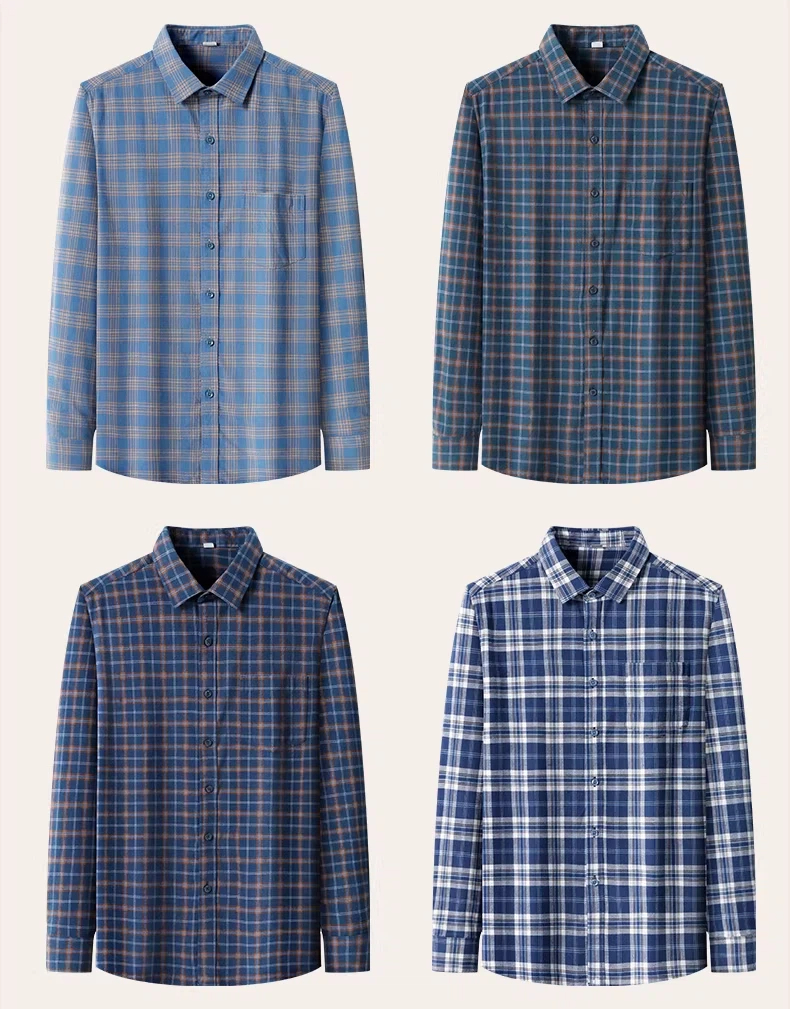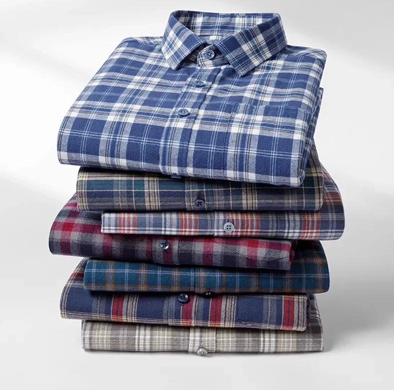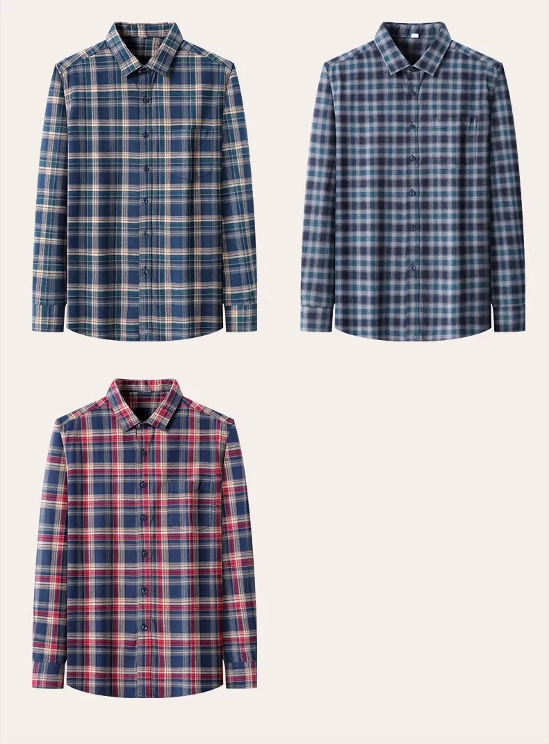 เสื้อเชิ้ตแขนยาวลายสก๊อตผ้าฝ้ายลําลอง