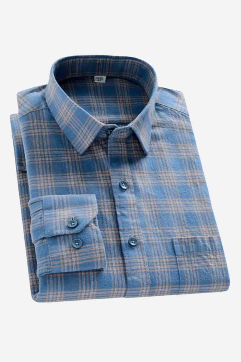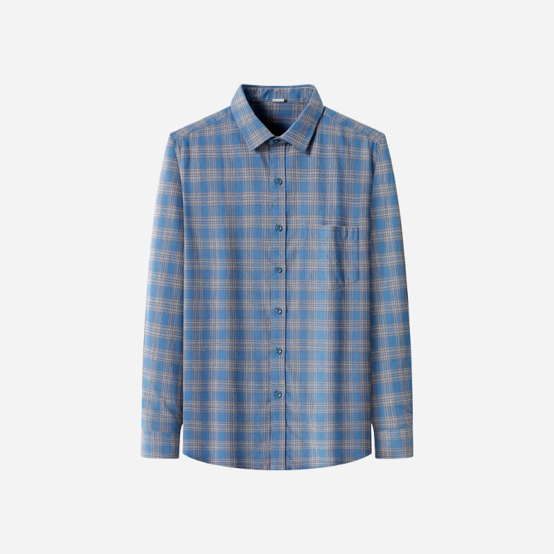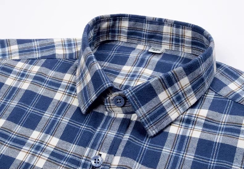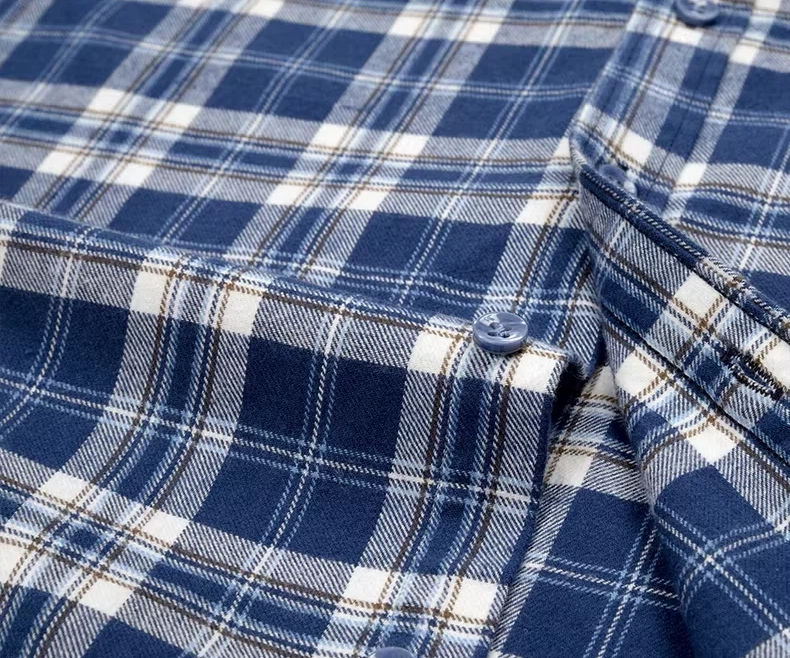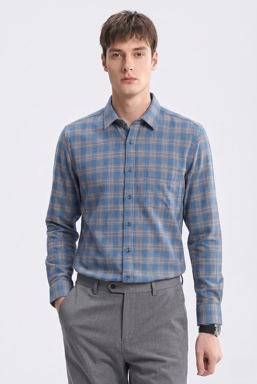 เสื้อเชิ้ตแขนยาวลายสก๊อตผ้าฝ้ายลําลอง